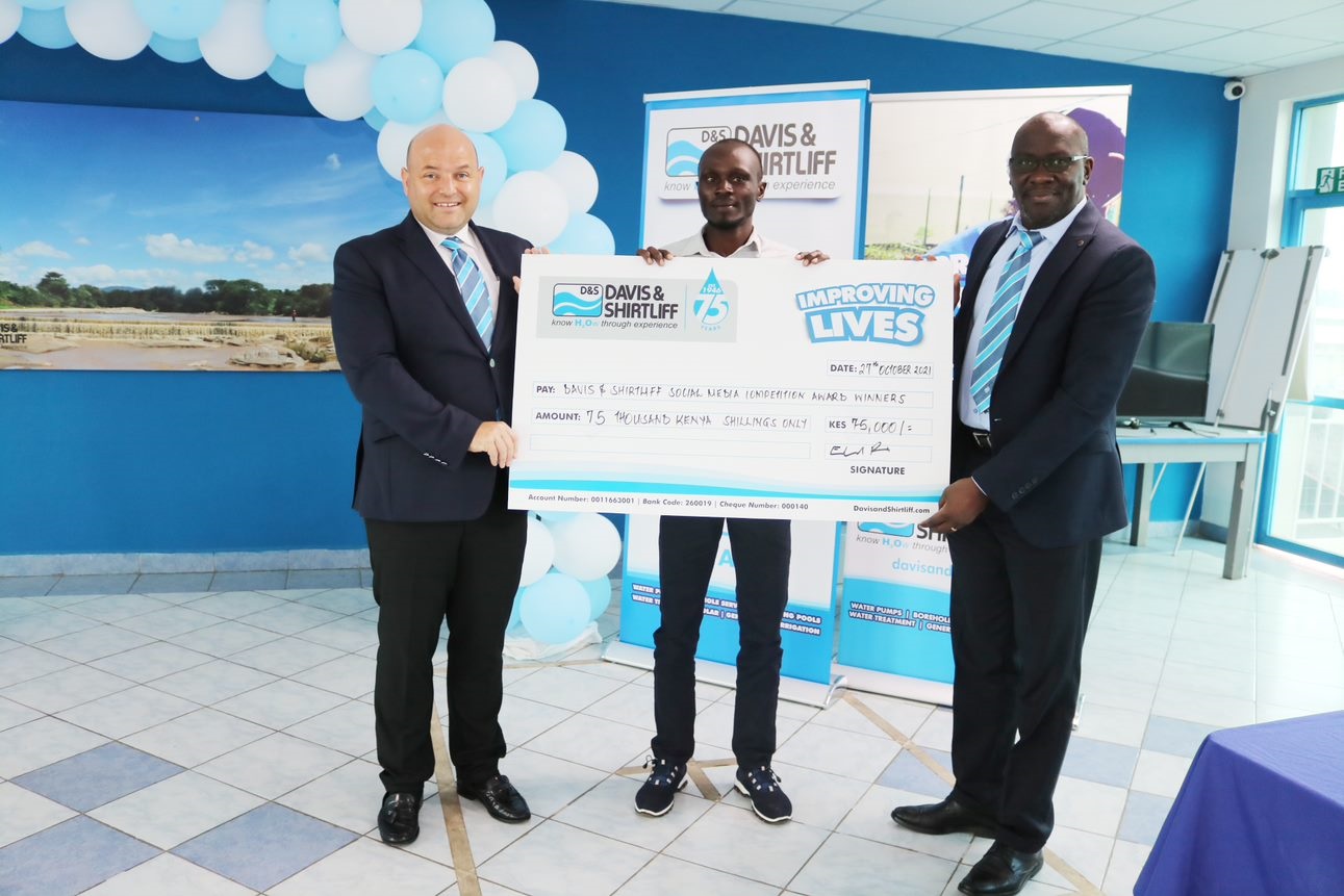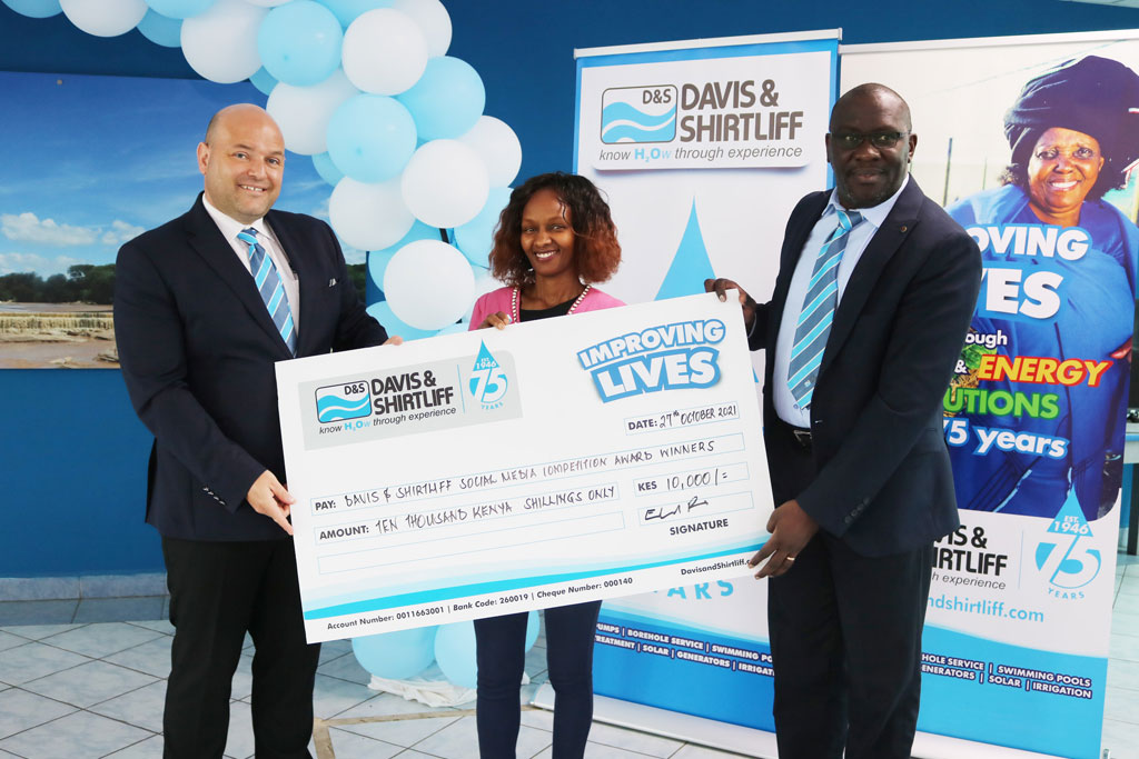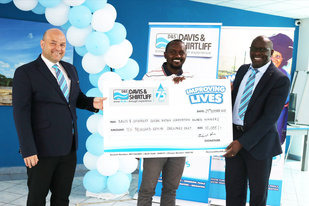 As part of D&S's recent 75th Anniversary celebrations, a competition was launched on the company's social media platforms to find the best stories from customers of how D&S has improved their lives. The overall winner was Eugene Omoke from Kitale whose story revolved around how the Dayliff Sunflo pump had improved their farming business and turned it into a sustainable source of income. He is pictured receiving his prize from D&S Kenya MD Edward Davis and GM Industrial Area David Bolo.