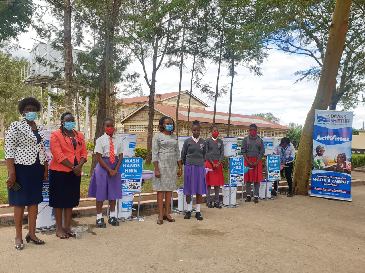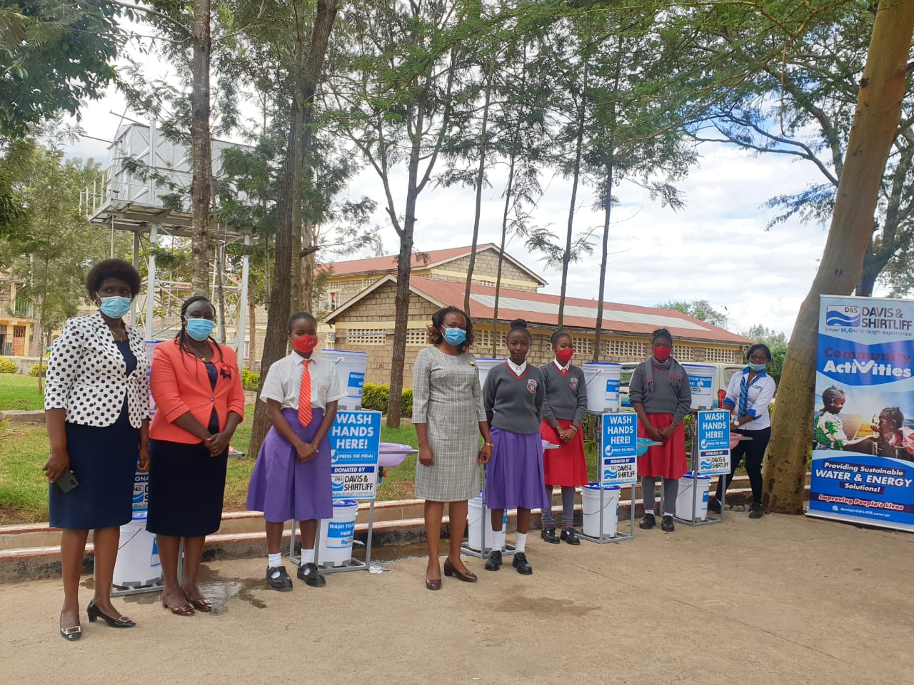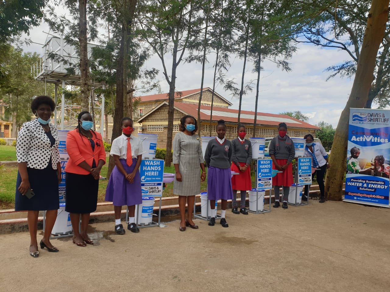 Tala Girls High School is an extra county-level secondary school located in Matungulu Sub-County. The donation was done in response to an application made by the school, through the company website, to promote handwashing among the students. The stations will benefit over 500 people in the school and the local community. During the commissioning ceremony, the school principal, Mrs. Annabel Kiriinya expressed her gratitude to Davis & Shirtliff for the donation. Pictured are teachers and students during the handover ceremony.