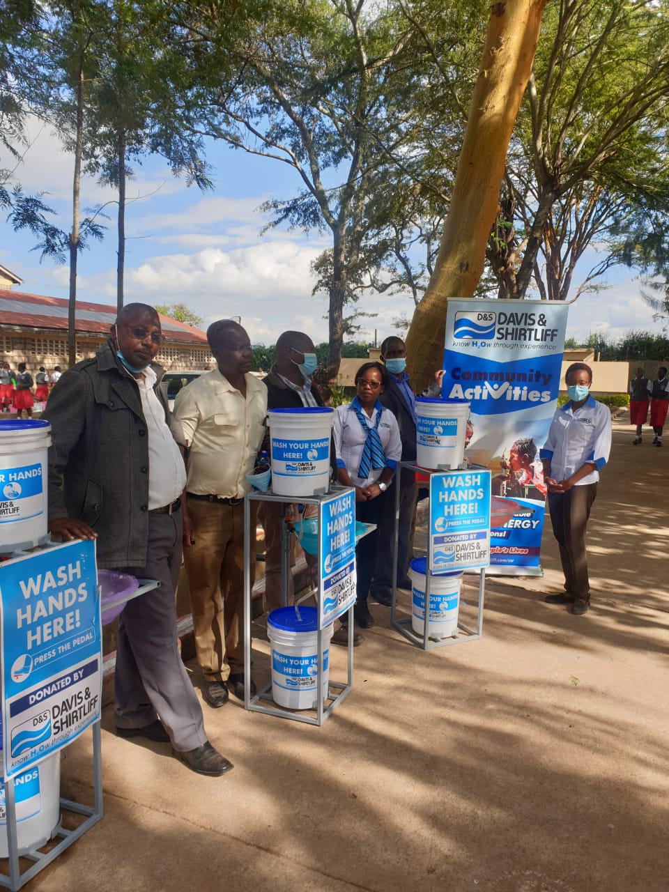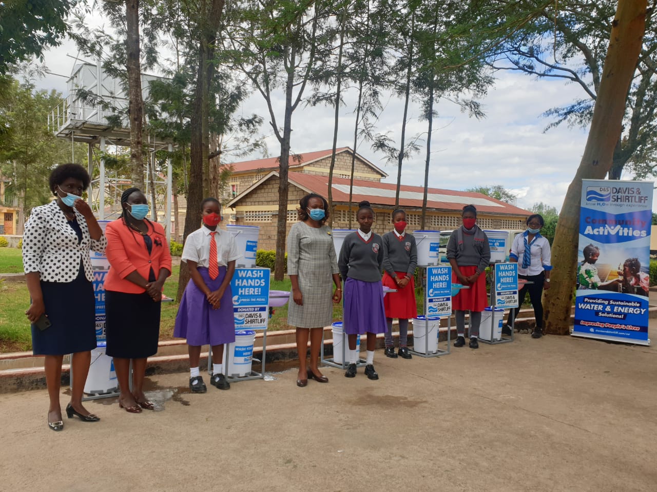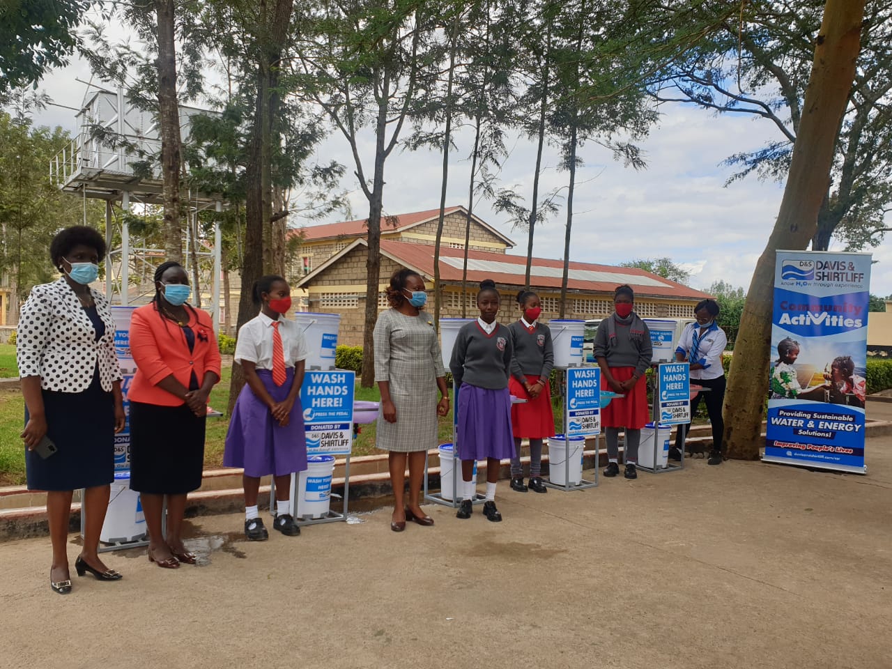 Tala Girls High School is an extra county-level secondary school located in Matungulu Sub-County. The donation was done in response to an application made by the school, through the company website, to promote handwashing among the students. The stations will benefit over 500 people in the school and the local community. During the commissioning ceremony, the school principal, Mrs. Annabel Kiriinya expressed her gratitude to Davis & Shirtliff for the donation. Pictured are teachers and students during the handover ceremony.
