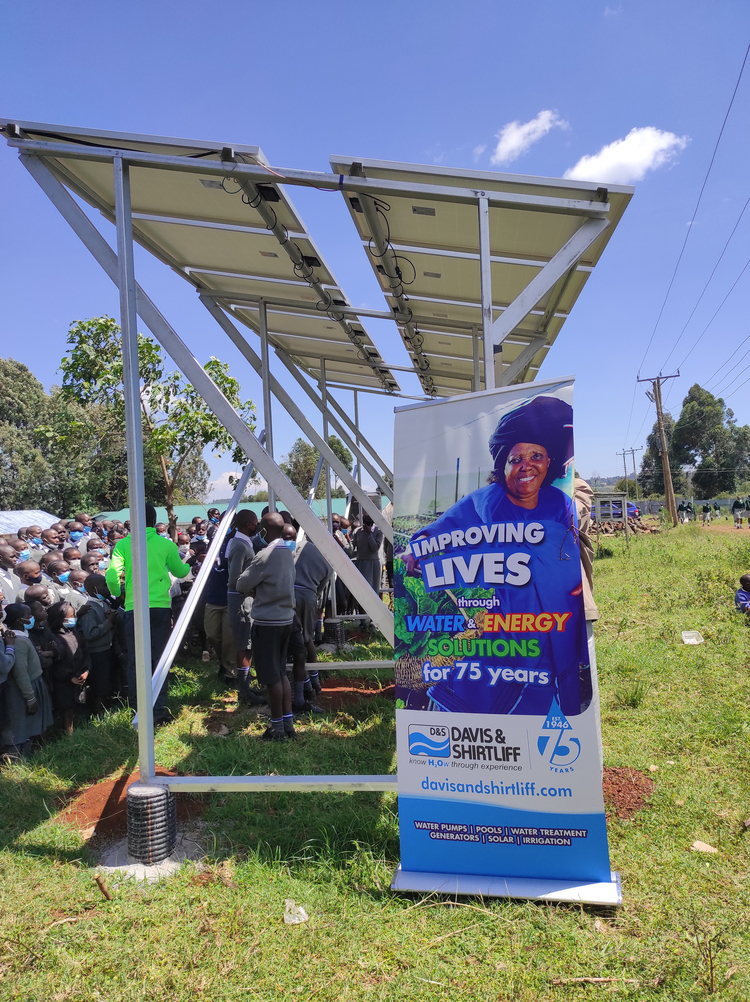 Their borehole was drilled and equipped by The Rotary Club of Uasin Gishu. They have been having challenges in settling their electricity bills which averaged at KES. 30,000 monthly and a higher percentage of the bill was attributed to the borehole pump. This is what prompted them to approach Davis & Shirtliff for CSR support through their chairman Dr. Gilbert Bor. They have an SP3A-25 borehole pump that supports the primary school, secondary school, and their sponsor church. Davis & Shirtliff Eldoret, through the #ImprovingLives Initiative, installed a solar system to power the borehole pump which comprised of a Dayliff 3.7kW controller, an array of 14 * 200W solar panels, and other accessories. The donation and installation was fully sponsored by the initiative. The school is delighted with the project, as expressed by the headteacher Madam Susan Rono, and now looks forward to channeling the expected savings to other critical functions.