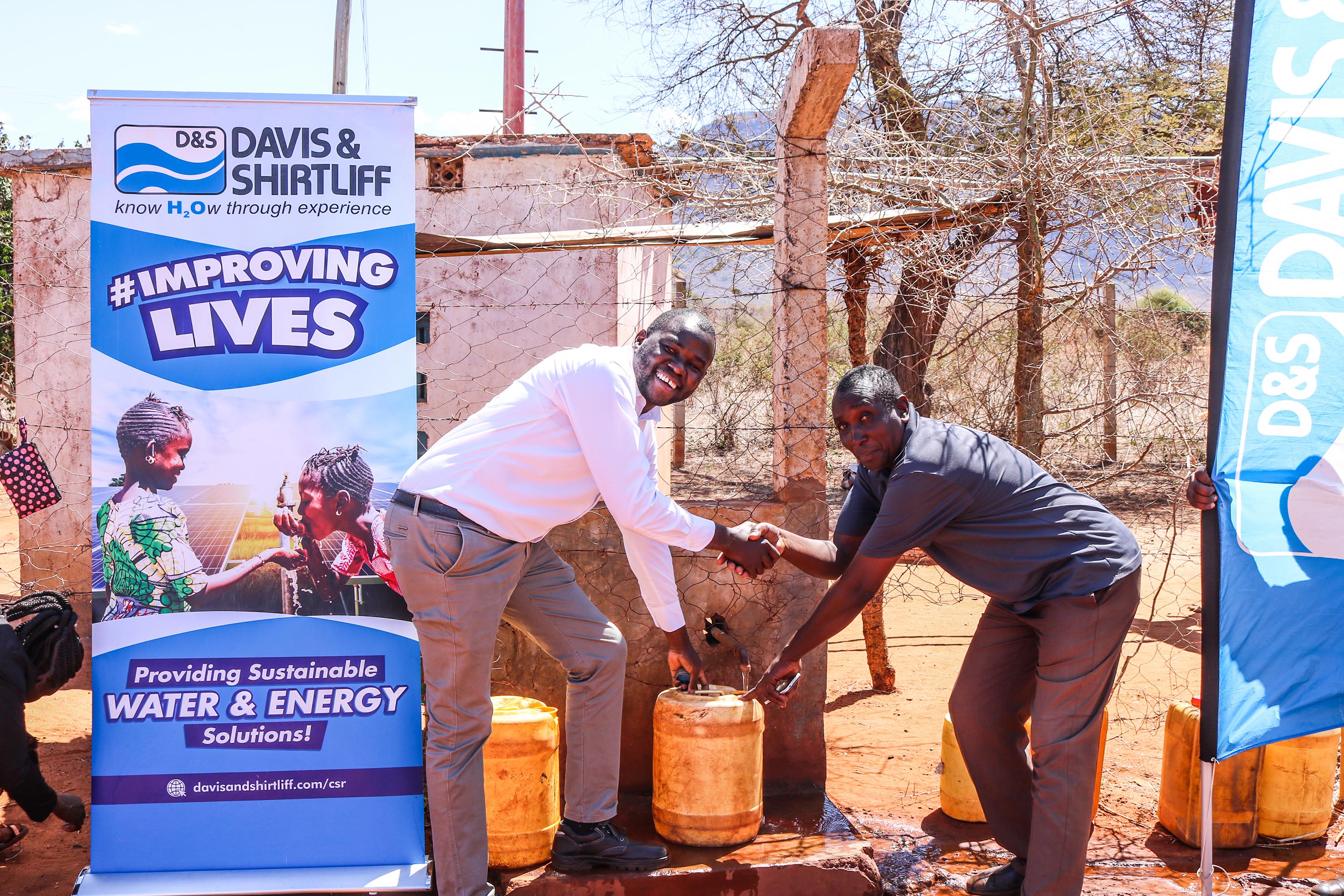 The community leaders testified of how they would get water from Voi, a 2 hour walk from the village, and this would use up a huge amount of time. Pictured, are Davis & Shirtliff staff, together with the community elders, commissioning the project. Davis & Shirtliff, through the #ImprovingLives Initiative solarized a 2.2kw borehole pump and with the solar pumping system, the community now enjoys a reduction in the time utilized in fetching water and the livestock, which would go days on end without water, also enjoy the availability of the resource