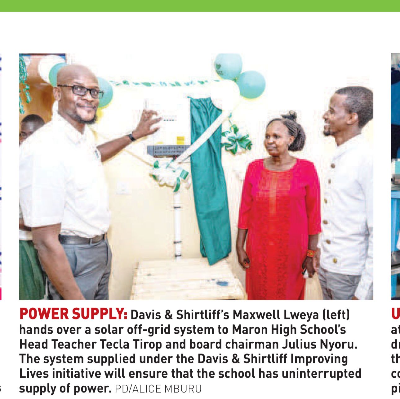 D&S Featured in the Standard & Nation during a CSR programme in Alice Village for a Solar Water Heater project08-07-24