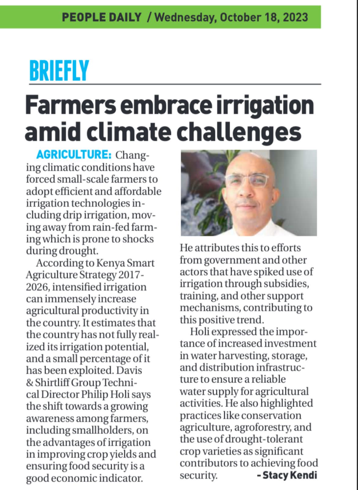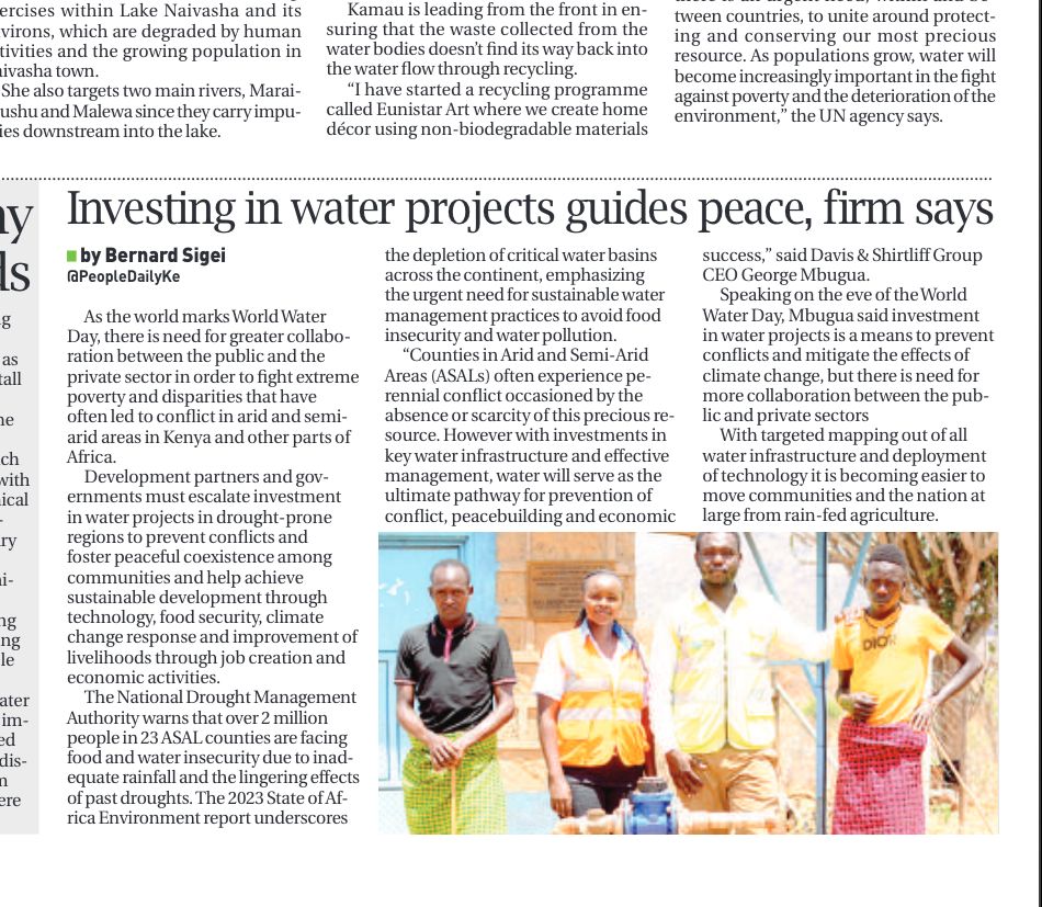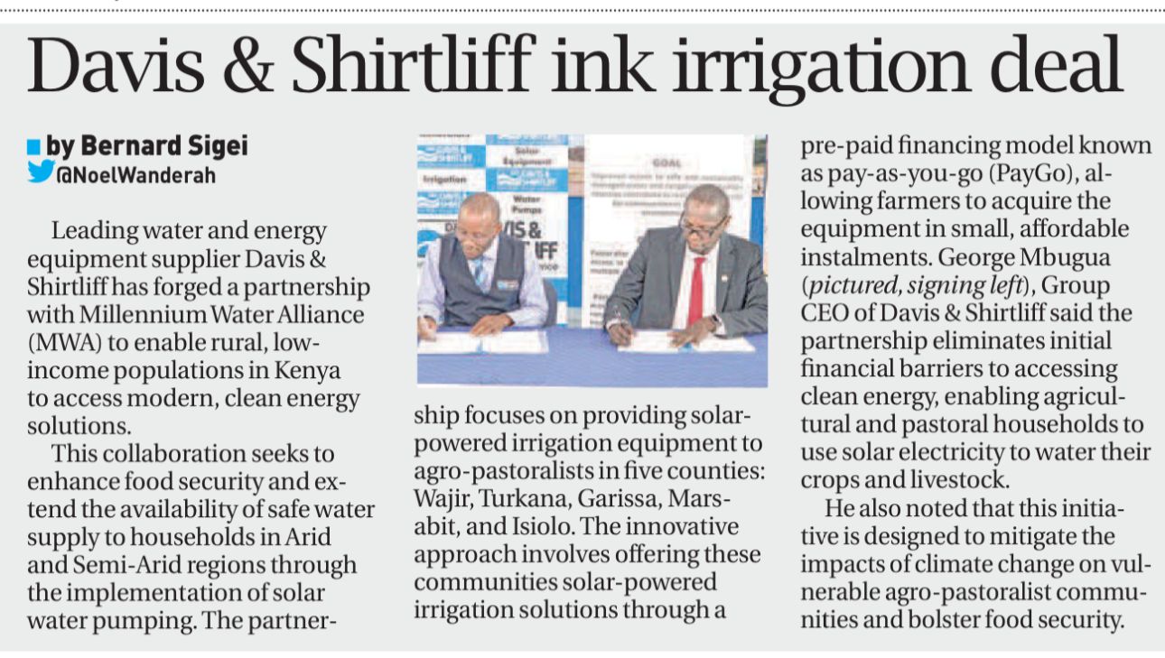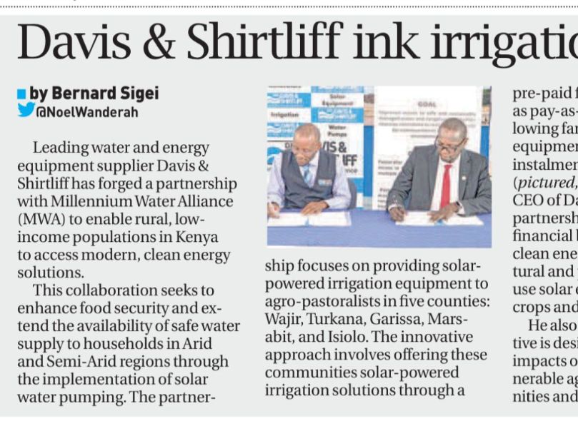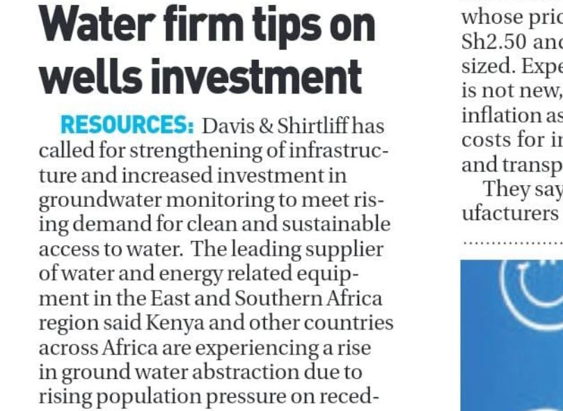 Davis & Shirtliff featured on the Standard on Water firm tips on wells14-02-23