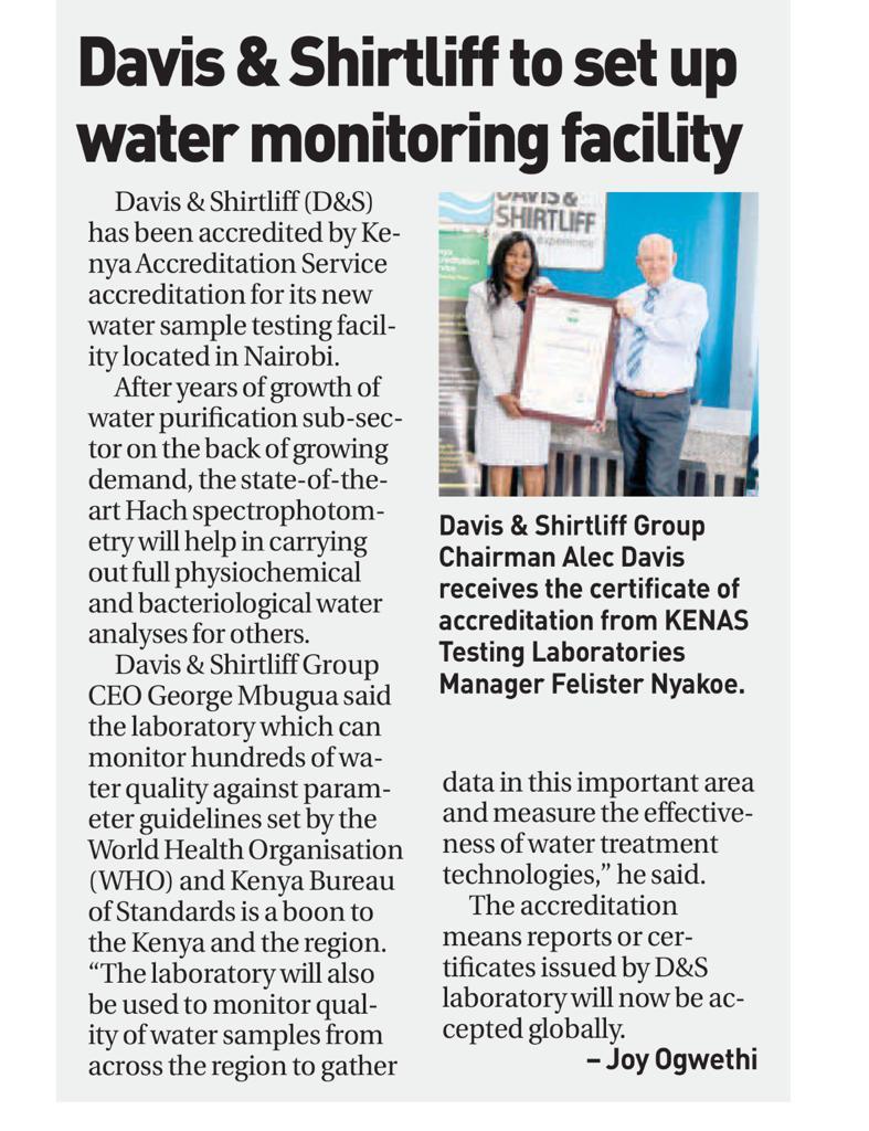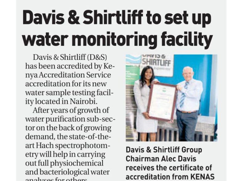 Davis & Shirtliff Water treatment Monitoring Lab was featured in the Standard9-03-23