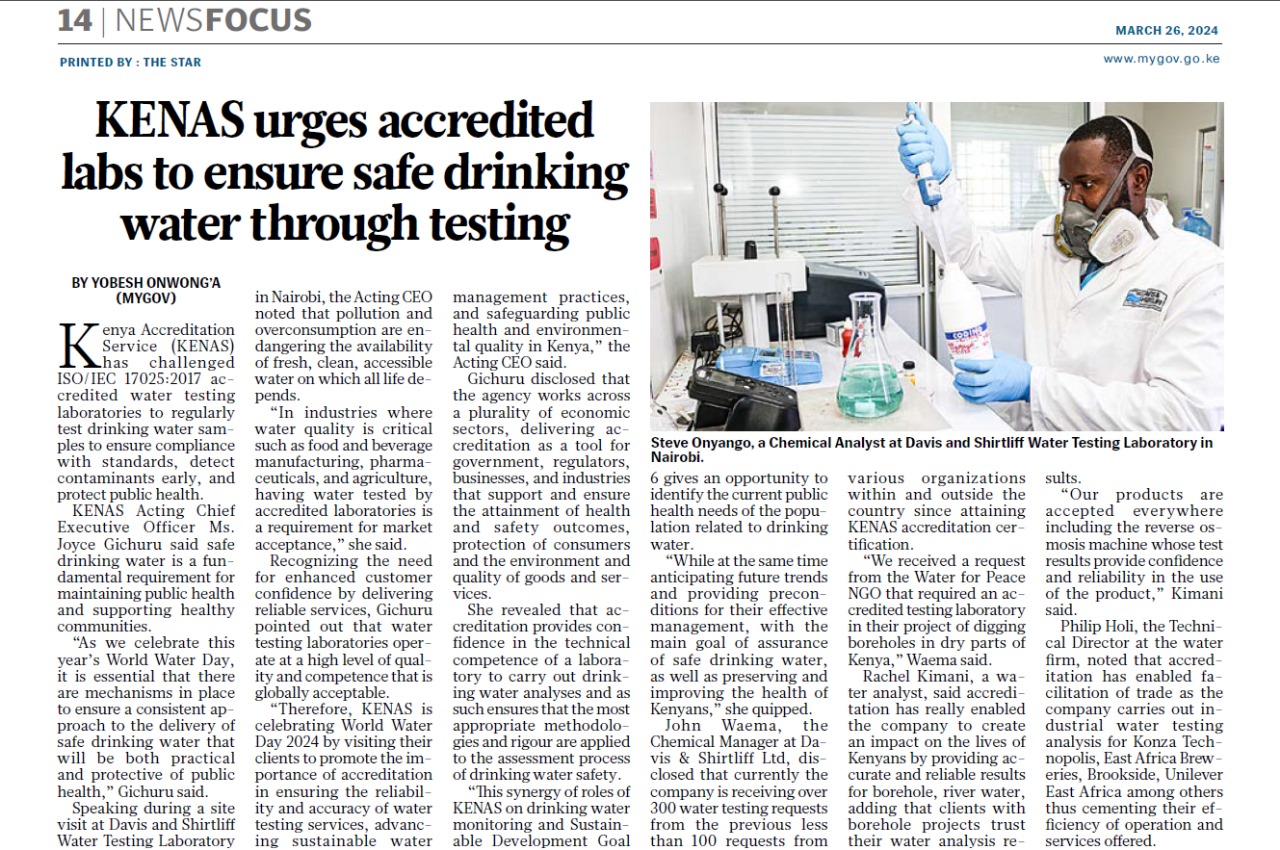 D&S Featured in the Standard on accredited labs doing Water Testing26-03-24